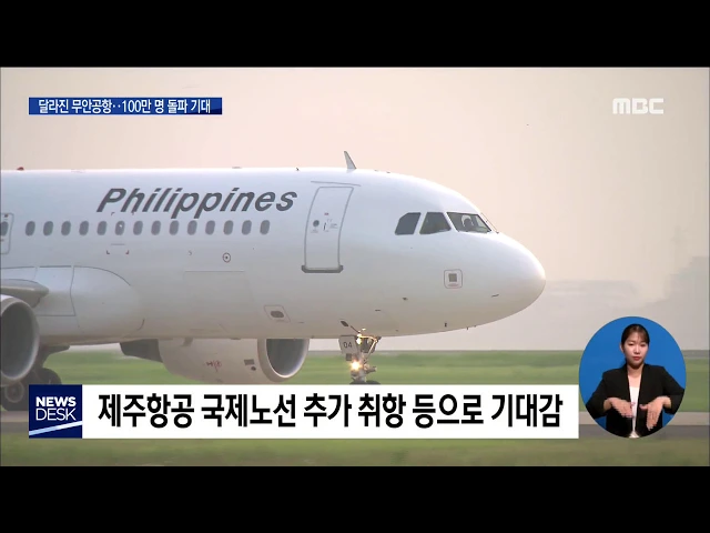 ◀ANC▶ 무안공항이 국제노선 확대로 이용객이 급증하면서 1년여만에 확 달라진 모습을 보이고있습니다 아직까진 이용객 백만명 돌파를 장담할순 없지만 가능성은 상당히 높아보입니다 고익수 기자가 보도합니다 ◀END▶ 지난해 4월 제주항공이 취항을 하면서 기지개를 켜기 시작한 무안공항, 불과 1년여만에 지금은 말 ...