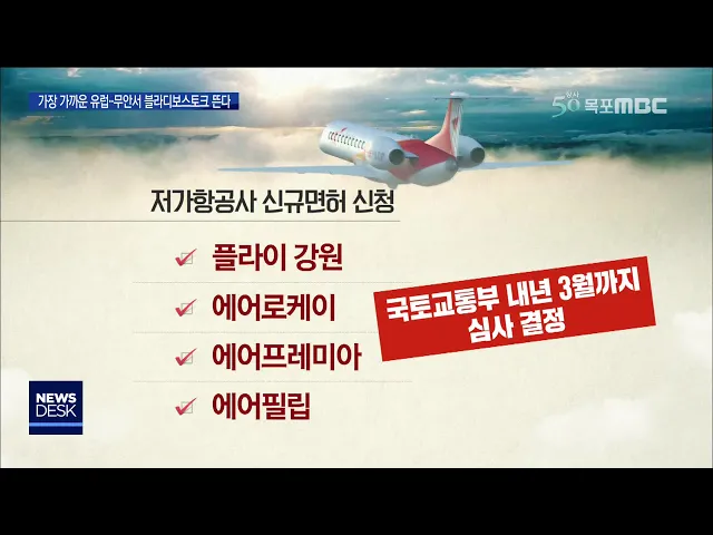 ◀ANC▶ 무안에서 러시아 블라디보스토크 노선 간 정기여객기 노선이 개설됐습니다. 에어필립 50인승 여객기로 오늘 취항식을 가졌습니다. ◀END▶ 무안-블라디보스토크 여객기는 오후 1시 40분 첫 운항에 나섰습니다. C/G]수요일,금요일,일요일 주 3회 왕복 운항하며,가장 가까운 유럽이라는 블라디보스토크까지 운항 소...