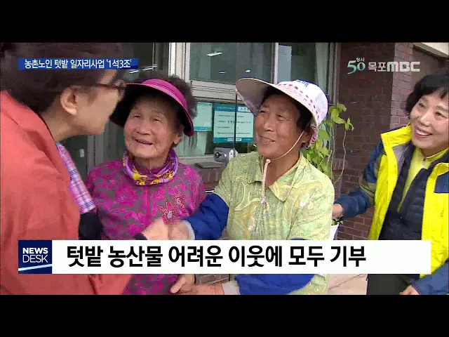 ◀ANC▶ 전남의 한 복지관이 농촌 노인들의 일자리 사업으로 텃밭 가꾸기를 추진하고 있습니다. 농촌 노인들이 가장 익숙한 노동인 텃밭 가꾸기를 통해 건강도 챙기고 생산된 농산물 모두를 지역의 어려운 이웃에 기부하는 기쁨도 누리고 있습니다. 장용기 기자가 다녀왔습니다. ◀END▶ 70세가 넘은 어르신 40여 명이 ...
