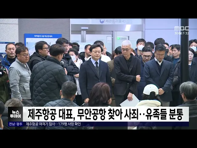 김이배 제주항공 대표이사가 어젯밤(29) 무안공항에 대기중인유가족을 찾아 사죄의 뜻을 전했습니다.김 대표는"희생자에게 애도와 조의를 표하고유가족에게도 진심으로 사과드린다"며사고 수습 이후 장례 절차와유족들을 위한 보상과 지원에최선을 다하겠다고 밝혔습니다.한편 유가족들은 김 대표를 향해 "서울에서 광주까...