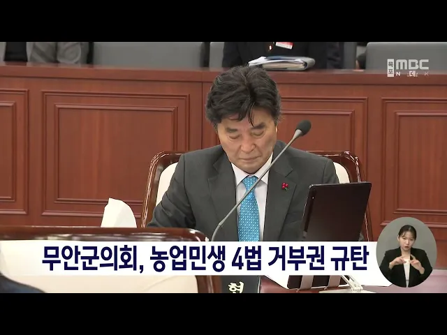 무안군의회가 한덕수 국무총리의농업민생 4법 거부권 행사를규탄했습니다.무안군의회는 오늘(20) 성명서를 통해"한덕수 총리와 송미령 농식품부장관 등내란 공범 혐의자들은 자격이 없다"며"윤석열 정부의 거부권은 국민에 의해 거부됐다"고 비판했습니다.또 산지쌀값에 대한 특단의 대책 마련과벼 재배면적 일방적 감축 중...