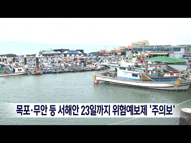 전남서해앞바다에 풍랑주의보가 발효돼 해경이 내일(23)까지 목포와 무안 등7개 시군 연안에 안전사고 위험예보제 '주의보'를 발령했습니다.목포해양경찰서는 이 기간연안해역과 항포구*갯바위 등 해안가저지대 위험지역의 방문을 자제하고, 항포구 계류 선박의 고박 상태를점검해달라고 당부했습니다.