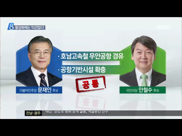 ◀ANC▶ 목포문화방송에서는 지역현안 문제에 대해 대통령 선거에 출마한 후보들이 무엇을 공약에 반영하고 있는 지 점검하는 순서 마련했습니다. 오늘은 첫번째 순서로 '무안국제공항'을 공약 분석의 열쇳말로 정하고 후보들의 공약내용을 따져봤습니다. 김 윤 기자가 보도합니다. ◀END▶ 노무현 정부 시절인 지난 2007...