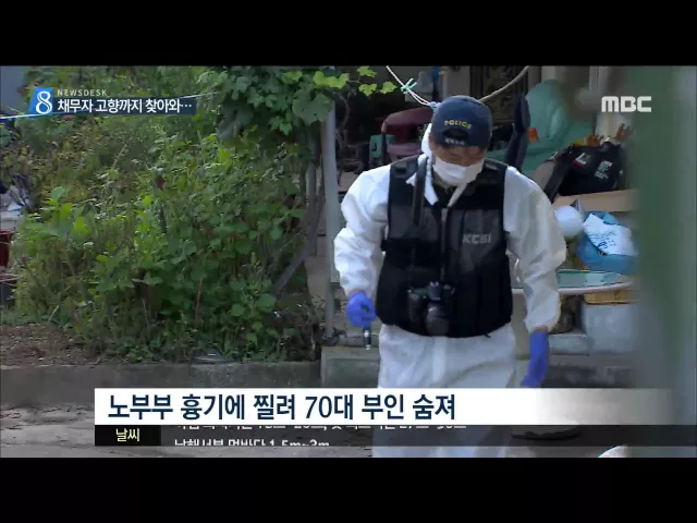 ◀ANC▶ 무안의 한 주택에서 한 40대 남성이 노부부에게 흉기를 휘두르고 달아나 부인이 숨졌습니다. 부부의 아들과 채무관계에 있던 동업자의 소행으로 보입니다. 김진선 기자가 취재했습니다. ◀END▶ ◀VCR▶ 주택 마당에 가재도구와 혈흔이 뒤섞여 흩어져있습니다. 이 집에 사는 79살 정 모 씨 부부가 흉기에 찔렸다...