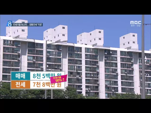 ◀ANC▶ 요즘 아파트 전세를 알아보다 보면 차라리 사는 것이 낫겠다는 생각이 들 정도로 매매가격과 별 차이가 나지 않습니다. 전남지역 아파트의 매매가격 대비 전셋값 비율이 사상 최대치를 기록하면서 이른바 '깡통전세'에 대한 우려도 큽니다. 권남기 기자입니다. ◀VCR▶ 여수시 둔덕동의 한 아파트 단지. (투명C/...