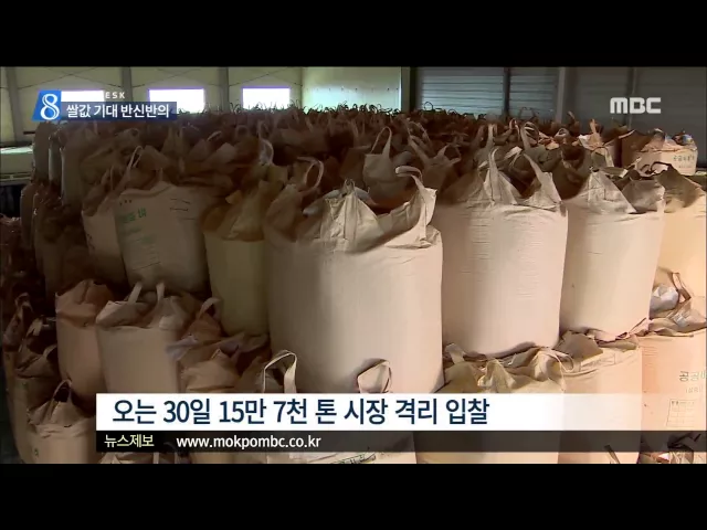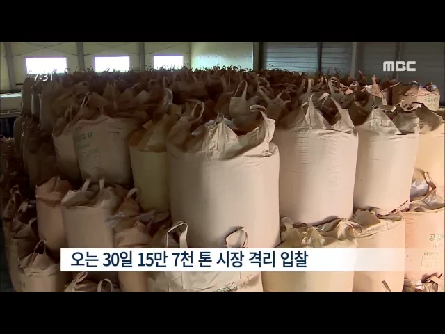 ◀ANC▶ 정부가 오는 30일 폭락한 쌀값을 올리는 대책으로 시중의 재고를 사들입니다. 하지만 시장에서는 크게 기대하는 반응을 보이지 않고 있습니다. 최진수 기자가 보도합니다. ◀END▶ ◀VCR▶ 지난 5일 현재 전국 평균 산지 쌀값은 20킬로그램 한 포대에 3만 6천여 원으로 1년 전에 비해 10% 가까이 떨어졌습니다. ...