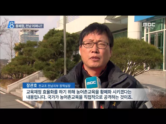 ◀ANC▶ 교육부가 올해부터 소규모학교 통폐합 대상을 확대하기로 했습니다 전교생 120명이 안되면 학교를 없애겠다는 것인데 농어촌이 많은 전남지역 교육에 비상이 걸렸습니다. 김양훈 기자가 보도합니다. ◀END▶ 무안의 한 중학교입니다. 학년마다 2개 학급, 학생 수는 125명입니다. 그동안 학교통폐합 대상에 포함되...