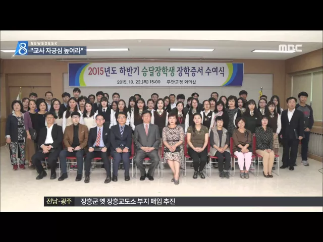 ◀ANC▶ 교육현장 안팎에서 "교사는 있지만 스승이 없다"는 이야기가 들리는 시대입니다. 교육자들 자존감과 자신감을 높이는 게 교육 경쟁력을 찾는데 도움이 된다며 교사에게 장학금을 주는 곳도 있습니다. 양현승 기자입니다. ◀END▶ ◀VCR▶ 교직생활 14년째, 수학과목을 가르치고 있는 교사 배강수 씨는 올해 장학...