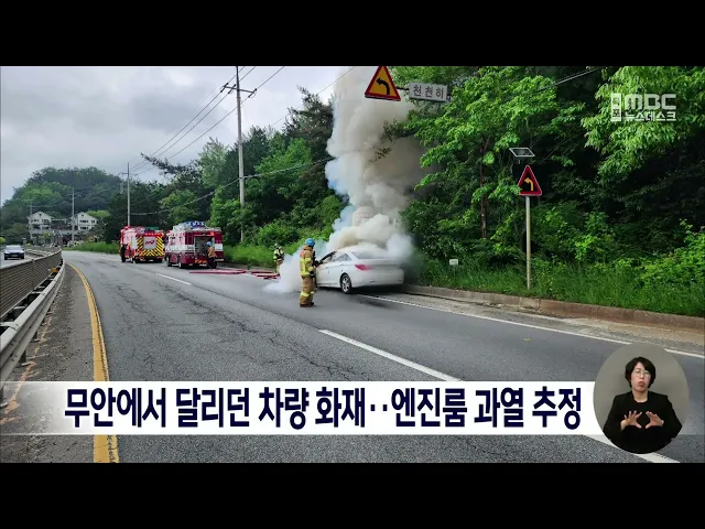 오늘(7) 오후 1시 30분쯤무안군 청계면의 한 편도 2차로 도로에서주행중이던 차량에서 불이 나차량이 전소됐습니다. 이 불로 다행히 인명피해는 없었으며소방당국은 엔진룸 과열로부터 불이 시작된 것으로 보고 정확한 화재 원인을 조사하고 있습니다.