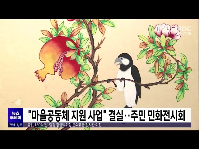 농한기 여가활동 지원 사업을 통해 민화를 배운 청수리2리 주민들이 무안 승달문화에술회관에서 전시회를 개최합니다. '울엄마 손에 핀 오색민화'를 주제로 열린 전시회에는 작가의 재능기부를 통해 민화를 배운 주민들의 까치 등 작품 35점이 공개됐습니다. 마을공동체 지원 사업을 통해지난해 민화를 배운 무안군 청계면 ...