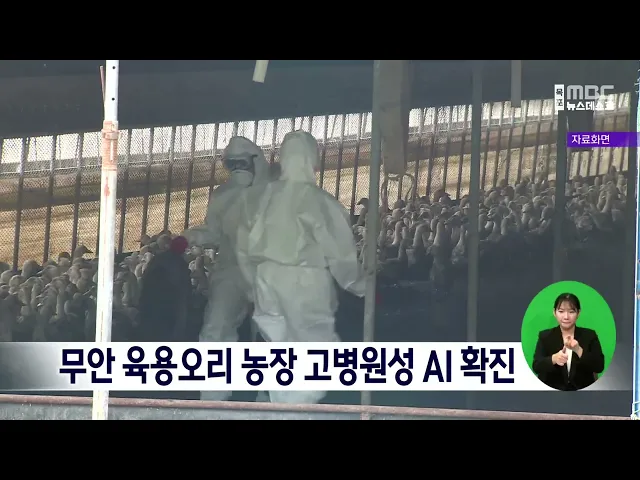 무안 육용오리 농장에서H5형 고병원성 조류인플루엔자가 확진됐습니다. 이번 확진으로 지난해 12월 3일 이후 현재까지가금농장에서 발생한 고병원성 AI는 26건이며전남은 모두 7건이 확진됐습니다. 방역당국은철새도래지 등 출입을 자재하고농장 출입 차량 2단계 소독과 축사 출입 전세척 등 방역수칙 준수를 당부했습니다....