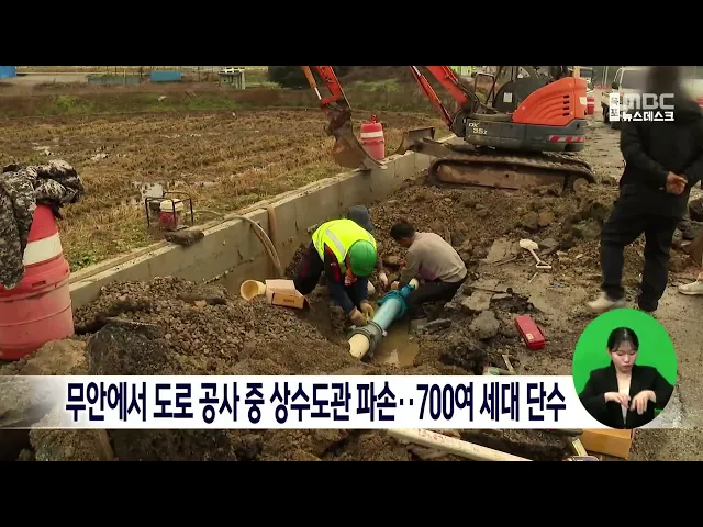 무안에서 도로 공사 중 상수도관 파손..700여 세대 단수