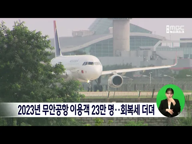지난해 무안국제공항 이용객 수가23만여 명을 기록한 것으로 나타났습니다. 지난해 기준 무안국제공항 이용객 수는 23만 8천 729명으로 2022년 4만 6천여 명보다 5배 정도증가했습니다. 하지만 코로나19가 유행하기 이전인2019년 90만 명과 비교하면 여전히더딘 회복세를 보이고 있습니다.