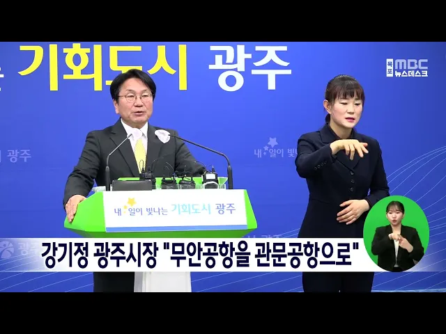 강기정 광주시장이송·신년 기자회견을 통해무안국제공항의 활성화에 노력하겠다는 뜻을 거듭 밝혔습니다. 강 시장은기업하기 좋은 도시가 되기 위해서는관문 공항이 필수라며 "광주*전남 중심으로 볼 때 관문공항은 무안공항"이라고 밝히고, "관문공항이 잘 열릴 수 있도록광주시장이 전남지사처럼 뛰어야한다고생각한다"...