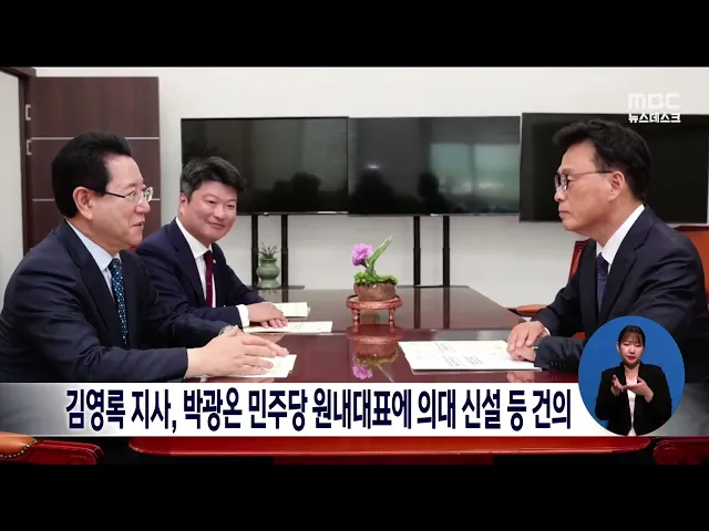 김영록 지사, 박광온 민주당 원내대표에 의대신설 등 건의