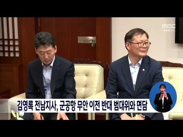 김영록 전남지사가 광주군공항 무안 이전 반대 대책위원회와 만나 공항문제에 대해 논의했습니다. 전라남도는 김영록 지사가 반대 대책위에 광주 민간공항과 군공항의 무안 이전 당위성과 소음피해 우려에 대한 오해 등을 설명하고 앞으로 소통을 강화하기로 했다고 밝혔습니다. 하지만 무안 대책위측은 광주군공항 무안 이...