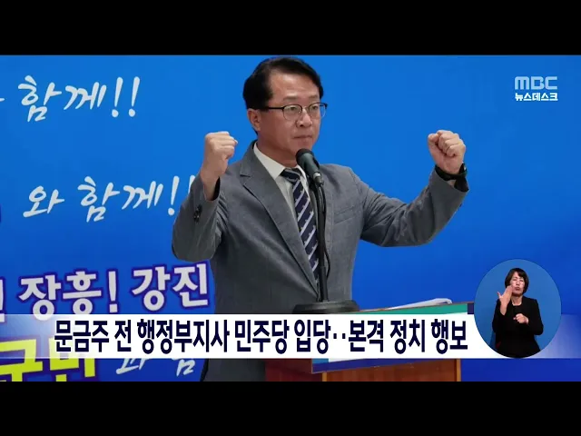 문금주 전 전라남도 행정부지사가 더불어민주당 입당을 시작으로 본격적인 정치 행보에 나섰습니다. 문 전 부지사는 입당식에서 지난 29년 간의 공직 생활에서 얻은 경험을 바탕으로 지역 발전과 초심을 잊지 않는 정치인이 되겠다고 밝혔는데 내년 22대 총선에서 고흥*보성*장흥*강진 선거구에 출마할 것으로 알려졌습니...
