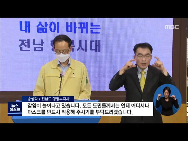 전라남도는 행정부지사와 보건복지국장이 순천에서 코로나19 발생 상황을 지휘하고 있습니다. 송상락 행정부지사의 담화문, 들어보겠습니다. ◀VCR▶송상락 전남도 행정부지사 "코로나 차단에 대해 다시 한 번 강조 말씀 드리겠습니다. 전남 75번 사례와 같이 마스크를 착용하지 않아 감염이 늘어나고 있습니다. 모든 도...
