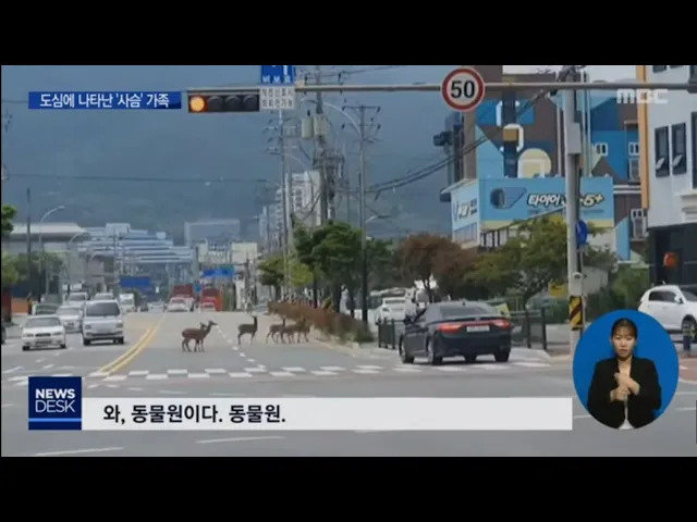 ◀ANC▶ 순천 도심 한복판에 사슴 가족이 나타났습니다. 시민들에게 목격된 게 올해만 벌써 10여 차례라고 하는데요, 서식 환경이 달라진 것이 원인으로 꼽히는 가운데, 상생 방안을 마련해야 한다는 목소리가 높아지고 있습니다. 조희원 기자입니다. ◀VCR▶ 순천시 조곡동의 한 대로, 사슴 7마리가 4차선 도로를 유유히...