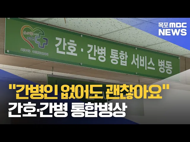 ◀ 리포트 ▶순천의료원이 '간호·간병 통합병상' 운영에 들어갔습니다.보호자나 간병인을 대신해병원에 소속된 인력이 환자를 돌봐주는 의료 서비스인데요.인력과 장비 확충을 위한 재정 지원이 필요해 보입니다.문형철 기자입니다. ◀ 리포트 ▶최근 장염에 걸려 순천의료원에 입원한 서원표 씨.지병으로 오른쪽 신체가 마비돼...