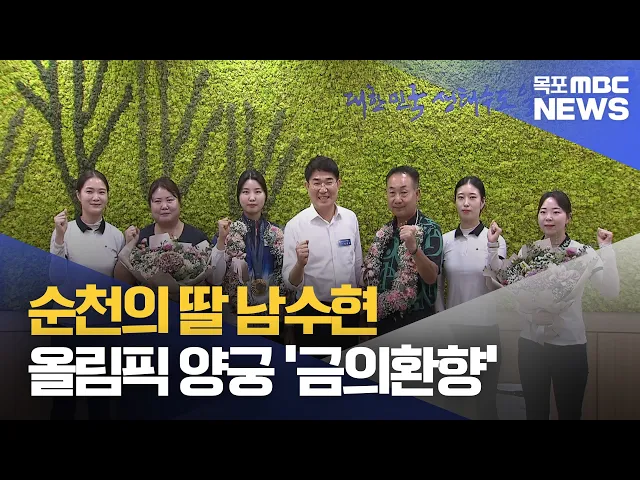 ◀ 앵 커 ▶파리올림픽에서금메달과 은메달을 따낸 양궁의 남수현 선수가어제(6) 귀국해 고향인 순천을 찾았습니다.남 선수는 좋은 성적을 거둘 수 있었던 비결로지역민의 열띤 응원을 꼽았습니다.유민호 기자입니다.◀ 리포트 ▶파리올림픽 양궁대표팀 막내 남수현 선수.첫 올림픽 무대에서 양궁 여자단체전 10연패의 위업을 ...
