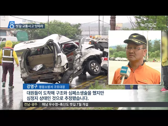 ◀ANC▶ 오늘 하루 비가 내리면서 빗길 교통사고가 잇따랐습니다. 영암에서는 승용차끼리 충돌해 2명이 숨졌고 순천에서는 버스가 논으로 추락했습니다. 최진수 기자가 보도합니다. ◀END▶ ◀VCR▶ 2차로에 멈춰선 차량 두 대가 심하게 부서졌습니다. 인도 옆길로 끌려나온 승용차는 옆 부분이 종잇장처럼 구겨졌습니다...