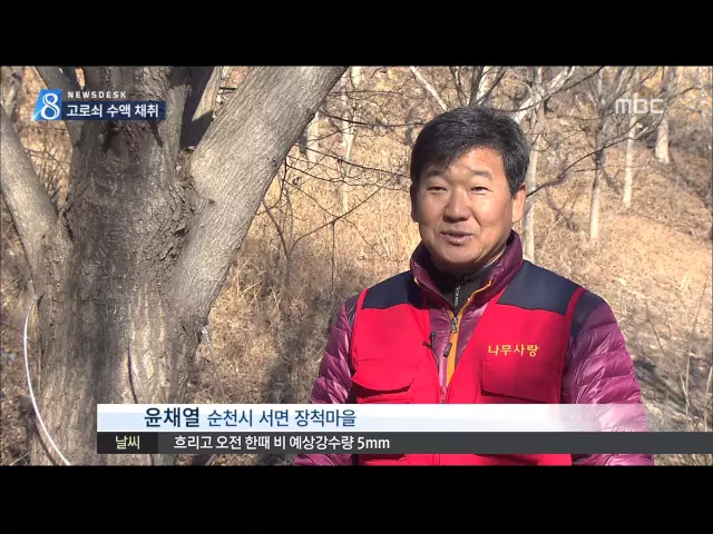 ◀ANC▶ 절기상 소한을 지나 대한을 앞두고 있습니다. 오늘(13) 순천에서 첫 고로쇠 수액 채취가 시작됐는데요, 올해는 큰 일교차로 도내 생산량이 늘 것으로 보입니다. 박민주 기자가 현장을 다녀왔습니다. ◀END▶ 고로쇠 나무들이 하늘 높이 뻗어있는 순천시 서면 장척마을, 겨울 바람이 매섭지만 산 기슭에서는 고로...