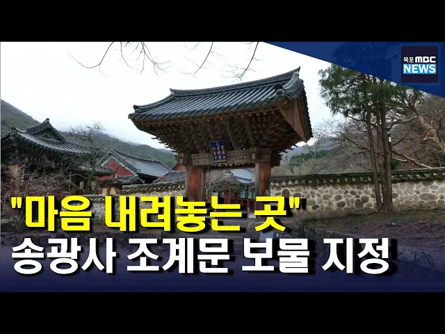 ◀ 앵 커 ▶사찰에 들어서기 전 처음 만나는 일주문은 복잡한 마음과 번뇌를 정리하는 공간인데요.최근 문화재청이 순천 송광사의 일주문인 조계문을 보물로 지정하면서, 선암사 일주문과 함께역사적 가치를 조명 받고 있습니다. 유민호 기자입니다. ◀ 리포트 ▶일렬로 세운 기둥 위에 얹힌 지붕.송광사에 들어서기 전처음 만...