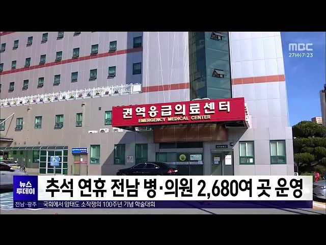 추석연휴 전남 병·의원 2,680여 곳 운영
