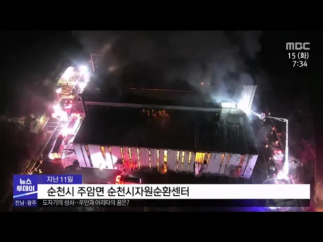 ◀ANC▶ 지난 주말, 폐기물 처리장인 순천시 자원순환센터에서 큰 불이 나 10시간 만에 진화됐습니다. 자원순환센터 화재가 이번이 처음은 아닌데요. 가뜩이나 지역에 부족한 폐기물 처리장에서 왜 자꾸 화재가 발생하는 건지, 강서영 기자가 취재했습니다. ◀VCR▶ 건물 지붕 사이로 연기가 피어오르고, 소방대원들이 불...