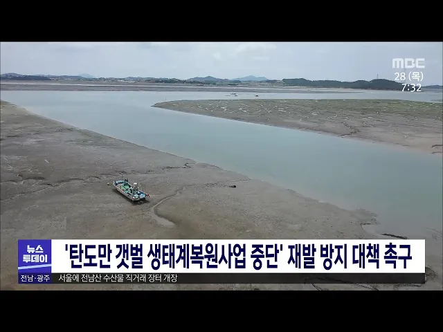 정길수 전남도의원이 탄도만 갯벌 생태계 복원사업 중단 사태와 관련해 각 지자체 상황을 고려하지 않고 급하게 추진해서 발생한 문제라며 전라남도에 재발 방지대책 마련을 촉구했습니다. 탄도만 갯벌 생태계 복원사업은 신안 지도읍과 무안 해제면 사이 갯벌을 복원하는 국비 사업인데 무안군이 생태계 변화와 농어민 피...