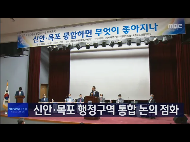 ◀ANC▶ 신안과 목포의 행정구역을 합치는 통합 논의가 오늘 대토론회를 시작으로 다시 점화됐습니다. 토론회에 참석한 박우량 신안군수와 김종식 목포시장은 일단 통합의 필요성에 인식을 같이 한다고 밝혀 앞으로의 통합 논의가 어떻게 진행될지 관심이 모아지고 있습니다. 박영훈 기자가 취재했습니다. ◀END▶ 오는 2...