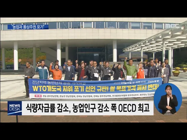 ◀ANC▶ 오는 25일, 정부가 WTO 개발도상국 지위 포기를 결정할 것이란 전망이 흘러 나오고 있습니다. 농민들은 정부가 농업을 포기하고 있다며 강하게 반발하고 있습니다. 양현승 기자가 보도합니다. ◀END▶ ◀VCR▶ WTO가 출범한 1995년. 정부는 농산물 무역적자, 낙후된 농업기반시설, 낮은 농가소득을 이유로 농업...