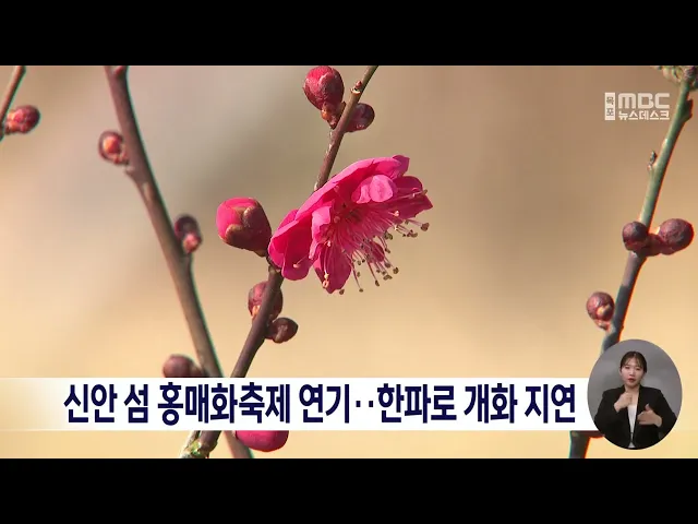 신안군이 올해 처음 개최되는 섬 홍매화축제 일정을 당초 예정된 28일에서 다음 달 6일로 일주일 연기했습니다.이는 올 겨울 한파 등 기후 여파로 매화 개화 시기가 늦어짐에 따른 불가피한 결정이라고 밝혔습니다.축제가 열리는 신안 임자도에는홍매화, 백매화 등 2천7백여 그루의 다양한 매화가 심어져 있습니다.