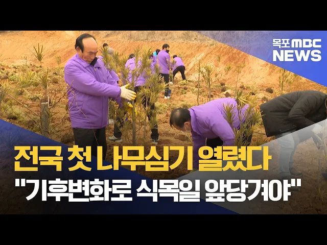 ◀ 앵 커 ▶기후변화로 나무 심기 적기가 점차 앞당겨지면서 기존 식목일 조정 필요성이 제기되고 있습니다.신안군은 올해도 전국 최초의 식목행사를 개최해, 이러한 변화에 선제적으로 대응하고 있습니다. 문연철 기자가 보도합니다.◀ 리포트 ▶미리 파놓은 구덩이에 묘목을 조심스럽게 심고, 정성껏 물을 뿌립니다.새로운 생...
