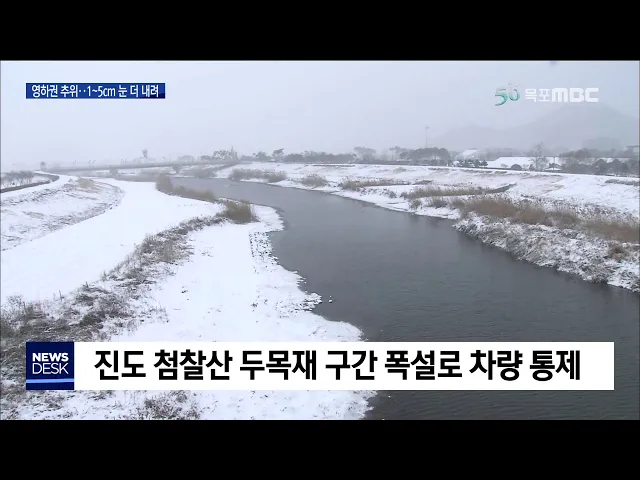 ◀ANC▶ 주말인 오늘 목포 등 전남지역에는 영하권의 추위속에 눈이 내렸습니다. 눈은 내일 새벽까지 최고 5cm 가량 더 내리겠습니다. 신광하 기자가 보도합니다. ◀END▶ 전남지역에 내린 첫 눈이 밤사이 이어지면서 온 세상이 하얗게 변했습니다. 보행자들은 미끄러운 도로를 위태롭게 건너고, 빙판길 차량들도 거북이 ...