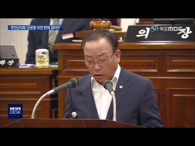 ◀ANC▶ 광주 군공항 이전의 유력한 후보지인 무안군에서 반대움직임이 본격화되고 있습니다. 무안군의회가 오늘(19일) 광주 군공항 무안군 이전을 반대하는 결의문을 채택하고 특별위원회를 구성해 조직적인 반대 활동을 벌이기로 했습니다. 박영훈 기자가 보도합니다. ◀END▶ 무안군 의회가 광주 군공항 이전사업이 ...