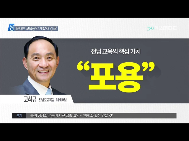 ◀ANC▶ '6.13 전남도교육감 선거 예비후보자에게 듣는다' 오늘은 첫순서로 전 목포대 총장 출신인 고석규 예비후보입니다. 고석규 예비후보는 문재인 정부의 교육공약을 개발한 주역이었다며 '포용'을 강조하는 전남형 교육모델을 만들겠다고 말했습니다. 김양훈 기자가 보도합니다. ◀END▶ 교육감 선거에 도전하기 위...
