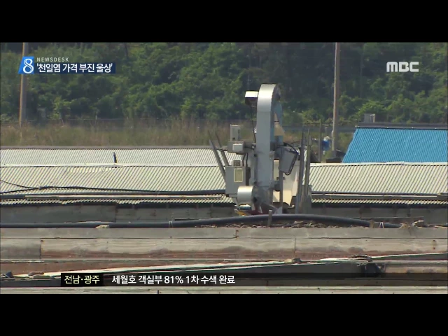 ◀ANC▶ 비 오는 날에는 우산장수가 웃고 맑은 날에는 소금장수가 웃는다는 말이 있습니다. 그런데 비가 거의 오지 않는 날씨가 계속되는데도 소금 생산 현장은 울상입니다. 무슨 까닭인지 박영훈 기자가 취재 ◀END▶ 목포에서 뱃길로 한 시간여 떨어진 섬마을 염전. 소금 작업에 나선 주민들의 표정이 어둡습니다. 산지...