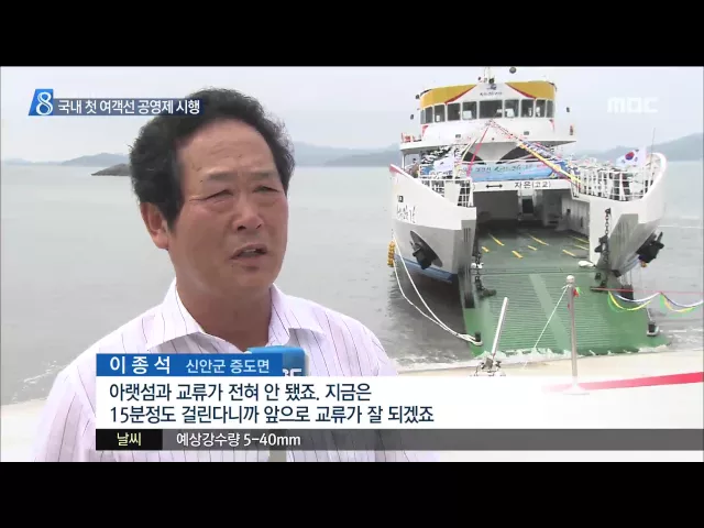 전국에서 처음으로 신안군이 증도-자은간 여객선을 공영제로 운영합니다. 신안군은 33억여 원의 자체 예산을 투입해 여객선 '섬들의고향 1호'를 건조했으며, 임기제 공무원으로 채용한 선장과 기관장의 인건비와 연료비 등 운영비 6억8천만 원도 모두 군비로 충당할 계획입니다. 신안군은 4.5킬로미터 거리에 불과한 북부...