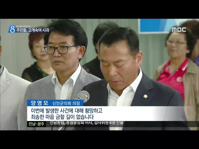 ◀ANC▶ 신안군 주민들이 고개를 숙이고 여교사 성폭행 사건이 발생한 것에 대해 사과했습니다. 가해자들을 관용없이 처벌해달라고 요구했습니다. 양현승 기자입니다. ◀END▶ ◀VCR▶ 신안군 여성모임을 비롯한 사회단체들과 신안군 의회가 잇따라 고개를 숙였습니다. 여교사 성폭행 사건을 사과하기 위해서입니다. 용...