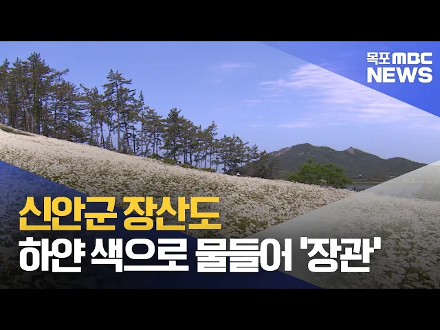 ◀ 앵 커 ▶ 신안군이 관광자원을 조성하기 위해추진하고 있는 1섬 1정원화 사업으로 섬이 색다르게 변신하고 있습니다. 신안군 장산도는 섬이 온통 하얀색 꽃으로 뒤덮여 장관을 이루고 있습니다. 김 윤 기자가 취재했습니다.◀ 리포트 ▶ 푸른 바다와 푸른 하늘 아래 피어난 하얀색 꽃들로 섬 전체가 물들었습니다. 바다 건...