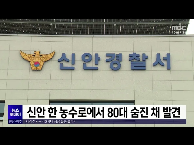 어제(18) 오후 5시 40분쯤신안군 비금면의 한 농수로에서80대 여성이 물에 빠져숨진 채 발견됐습니다.경찰은 여성이 당일 가족과 다툰 뒤집을 나섰다는 진술 등을 토대로마을 CCTV와 주변인 진술 등을 확보해정확한 사망 경위를 조사하고 있습니다.