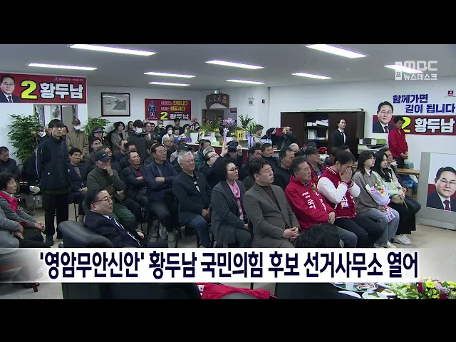 영암무안신안 선거구에 출마한황두남 전 국민의힘 영암무안신안 당협위원장이 어제(16) 선거사무소 개소식을 열고 총선에서의 필승을 다짐했습니다. 황두남 후보는 이 자리에서 '국민의힘은 실천하고 야당은 약속 뿐'이라는 슬로건을 내걸고 "후손들에게 살고싶은 내 고향 목포를 물려주기 위해 노력하겠다"고 밝혔습니다....