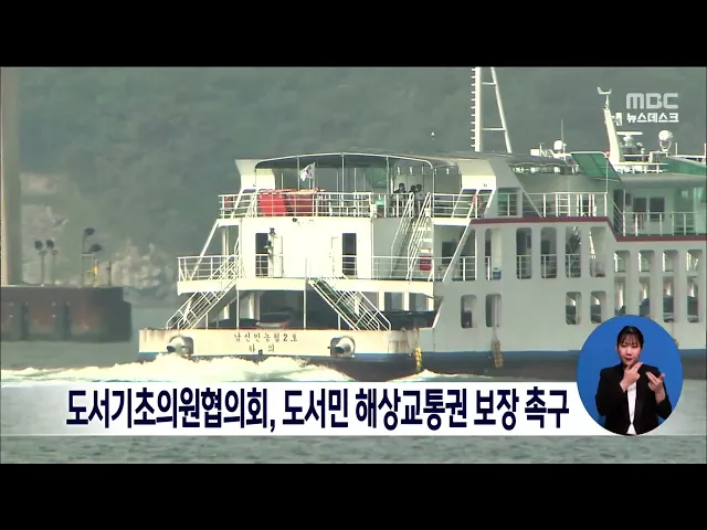 전국 도서지역 기초의원 협의회는 해상대중교통 육성과 지원에 대한 법률을 제정해 줄 것을 국회와 정부에 촉구하기로 했습니다. 완도, 신안, 강화군 등 전국 15개 도서지역 기초의원들이 가입된 협의회는 \"섬주민의 유일한 교통수단인 여객선을 대중교통으로 육성하고 지원해야만 섬의 인구소멸을 막을 수 있다\"며 \"여...
