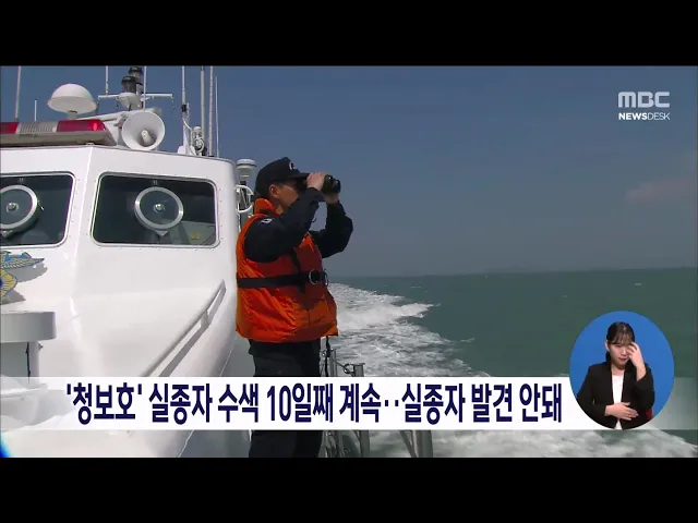 '청보호' 실종자 수색 10일째 계속.. 실종자 발견 안돼