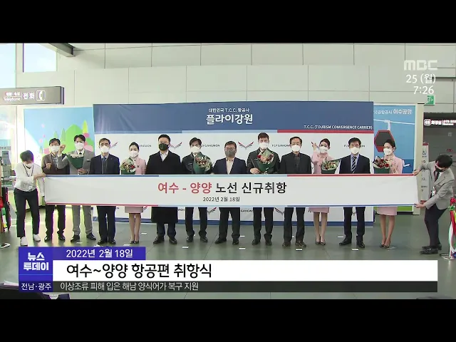 ◀ANC▶ 지난 2월, 여수~양양 항공편이 취항한 이후, 50%대의 탑승률을 유지하며, 관광 활성화에 청신호가 되고 있습니다. 여수시는 최근, 양양공항 배후 지역을 방문해 여수를 알리고 관광객을 유인할 수 있는 방안을 다각적으로 모색했습니다. 최우식 기자가 보도합니다. ◀VCR▶ 지난 2월 18일, 여수~양양 항공편이 취...