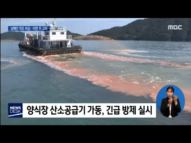 ◀ANC▶ 남해안에 발생한 적조로 여수지역 양식장에서 어류 24만여 마리가 폐사했다는 소식, 어제(17) 전해드렸는데요. 적조띠가 조금씩 옅어지고 있지만, 아직 안심할 수 있는 단계는 아닙니다. 수산당국은 이번 주말까지를 고비로 보고 긴급 방제에 들어갔습니다. 보도에 문형철 기자입니다. ◀VCR▶ 어른 팔뚝만 한 숭...