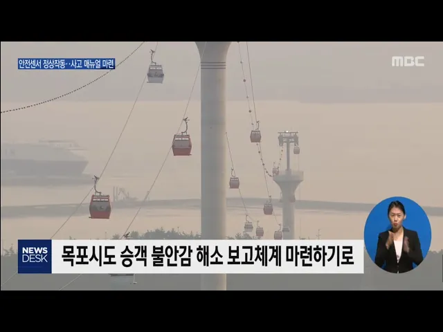 ◀ANC▶ 이처럼 목포 해상케이블카가 개통된 뒤 메인로프가 일시적으로 멈추는 경우가 여러 차례 발생하고 있습니다. 목포 해상케이블카 주식회사는 안전센서가 정상적으로 작동하고 있는 것이라며 안전에는 문제가 없다고 밝히고 있지만 승객들의 불안감은 여전합니다. 김 윤 기자가 취재했습니다. ◀END▶ 유달산을 지...