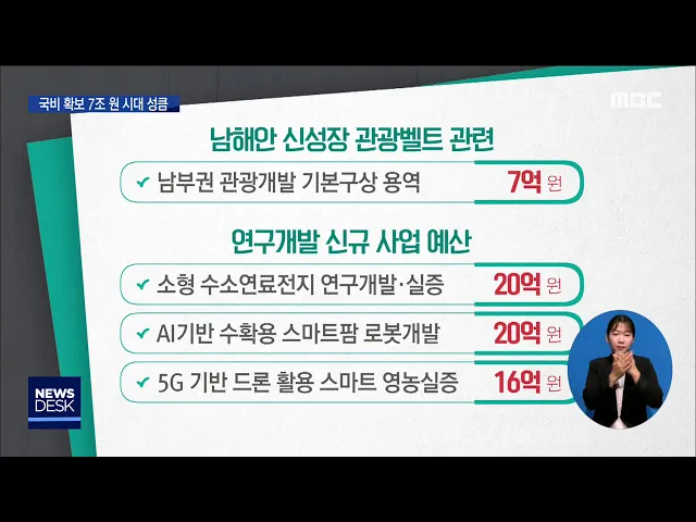 ◀ANC▶ 내년도 정부예산안에 전남도가 국비 6조 7천억원을 확보했습니다 블루 이코노미 실현을 위해 의미있는 예산과 7조 시대 개막에 필요한 3천억 원 증액 가능성을 고익수 기자가 정리했습니다 ◀VCR▶ 올해 국비 6조 천억 원을 확보해 처음으로 6조 원 시대를 열었던 전라남도, 내년 정부 예산안에는 6조 7천억 원을...